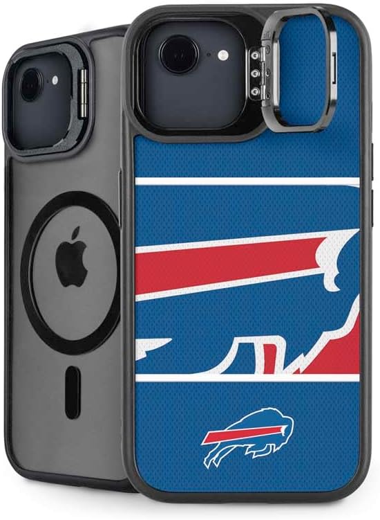 The NFL Buffalo Bills Vintage Kickstand Case compatible with iPhone 16e is the ultimate in versatile protection and convenience. Featuring an innovative lifted camera ring with a built-in stand, it allows hands-free video watching with adjustable angles from 0 to 150 degrees. This premium Buffalo Bills Case supports wireless charging and is fully compatible with MagSafe, offering a sleek design without compromising on durability or functionality.